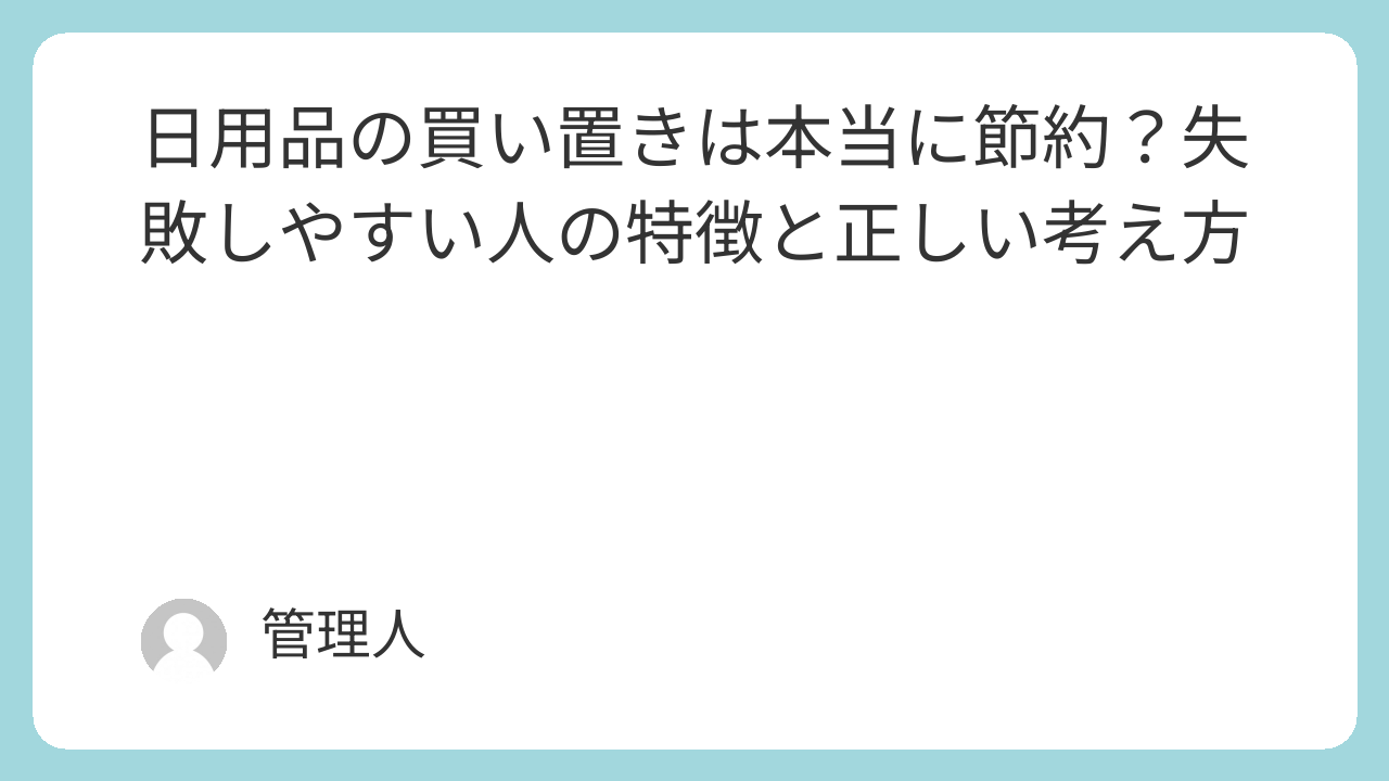 - 日用品の節約は習慣で決まる